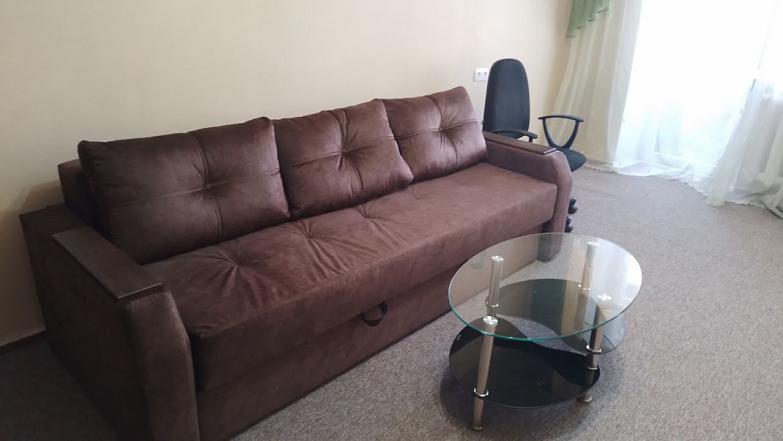 этажного дома. Сделал по всей квартире косметический ремонт, есть вся необходимая мебель и бытовая техника. Двуспальный диван, тумбочка, журнальный столик, шкаф, встроенная кухня + обеденный стол + стулья. Стиральная машинка автомат, бойлер, холодильник, газовая плита с духовкой. Туалет/ванна, на полу ковролин, мп-окна, застекленный балкон, бронированные двери, домофон.