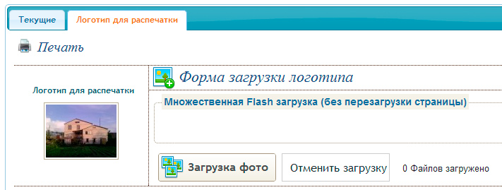 На этой же странице есть вкладка для загрузки логотипа, который будет отображаться в распечатке.